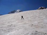 Then we chose to go down to the glacier (again as we would tomorrow). the snow was very packed down and skied, even off piste here, so tomorrow would be rattly.