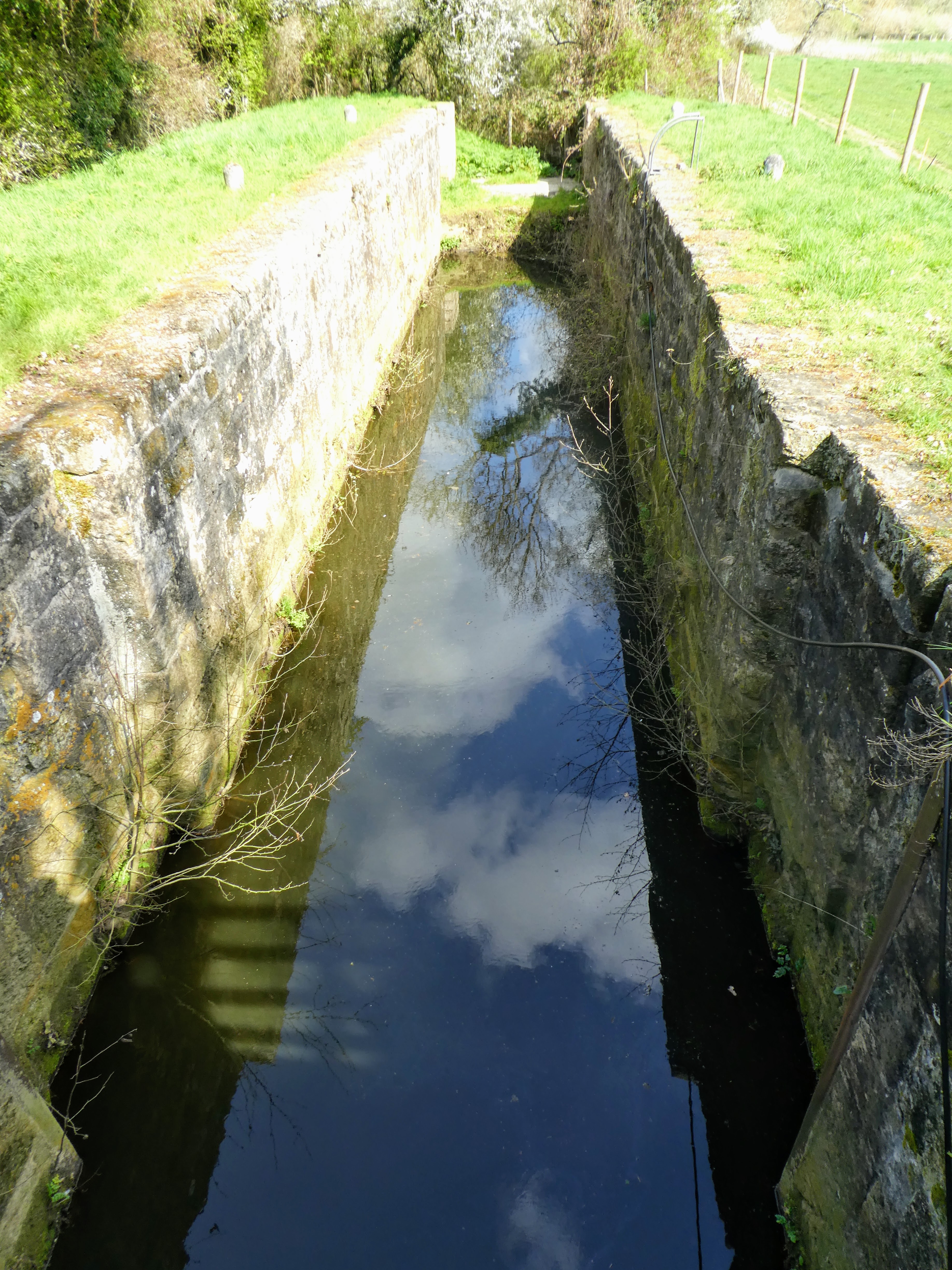 Down at the river - wider than where we had started - we crossed over to the remains of the canal earthworks, which we followed for a short distance until coming across the "lost"  lock, sitting on its own between two fields.