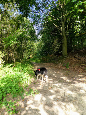 The garage had phoned to say that the van had been "fixed" and I could pick it up, Sue was over with her mother so Bertie and I set out to walk back to Peasmarsh, and the garage. This time though I would take a more direct route starting with a line drawn on the map and then using the paths and roads around to match it as best as possible. On paper the route was 5kms shorter, however there was a lot more up and down, and there would be some alterations on the fly to deal with traffic and fencing situations. The benefit was that the route would take in several local points of interest apart from the Godalming canal, including the Winkworth Arboretum, and Hascombe Hill iron age fort.