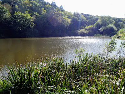 The track came out onto a tarmacked lane alongside the large ponds of the Tilling Bourne before it came out onto the A25
