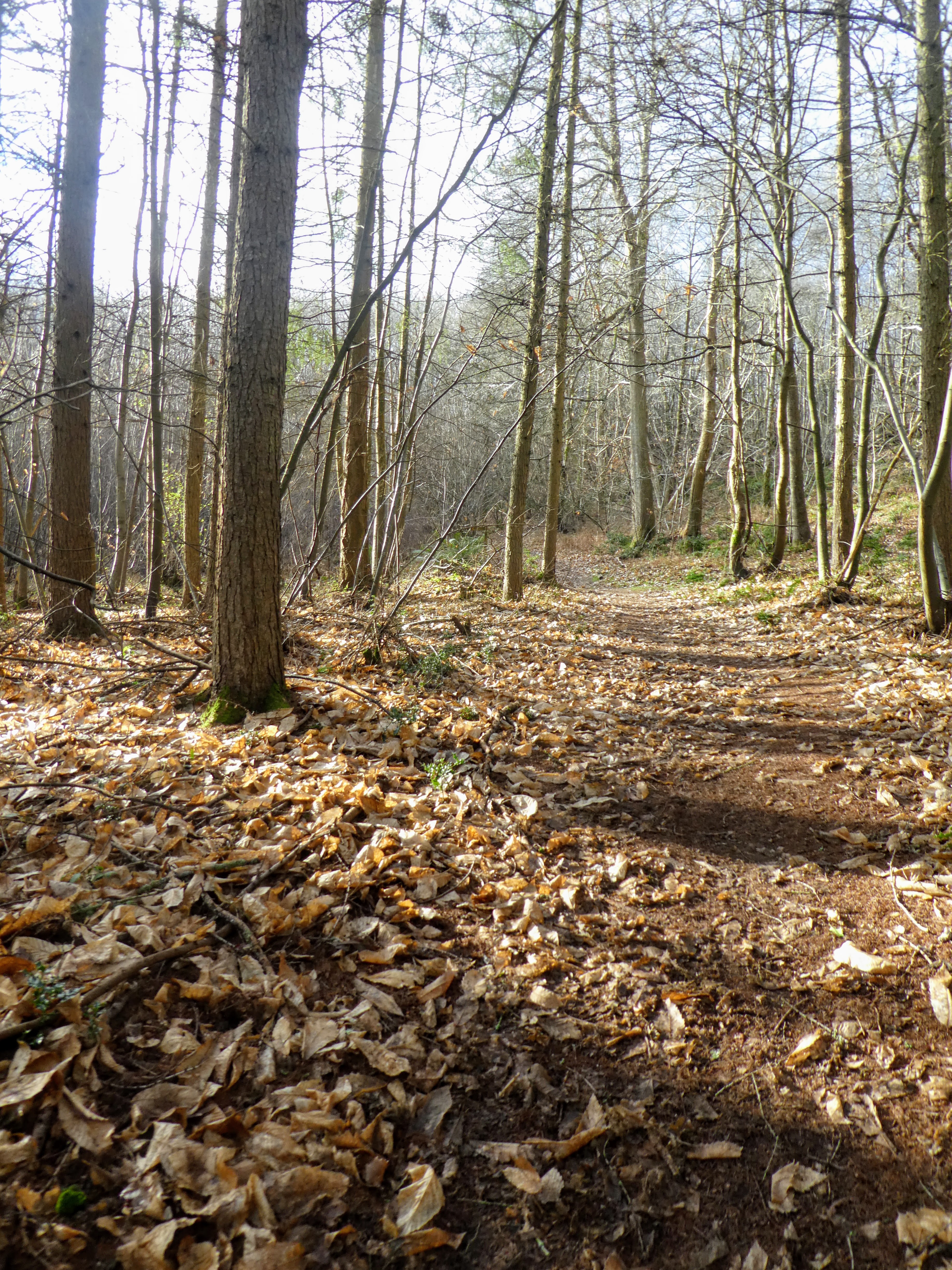 A gentle descent through neglected coppiced woods, which was being harvested for palings.