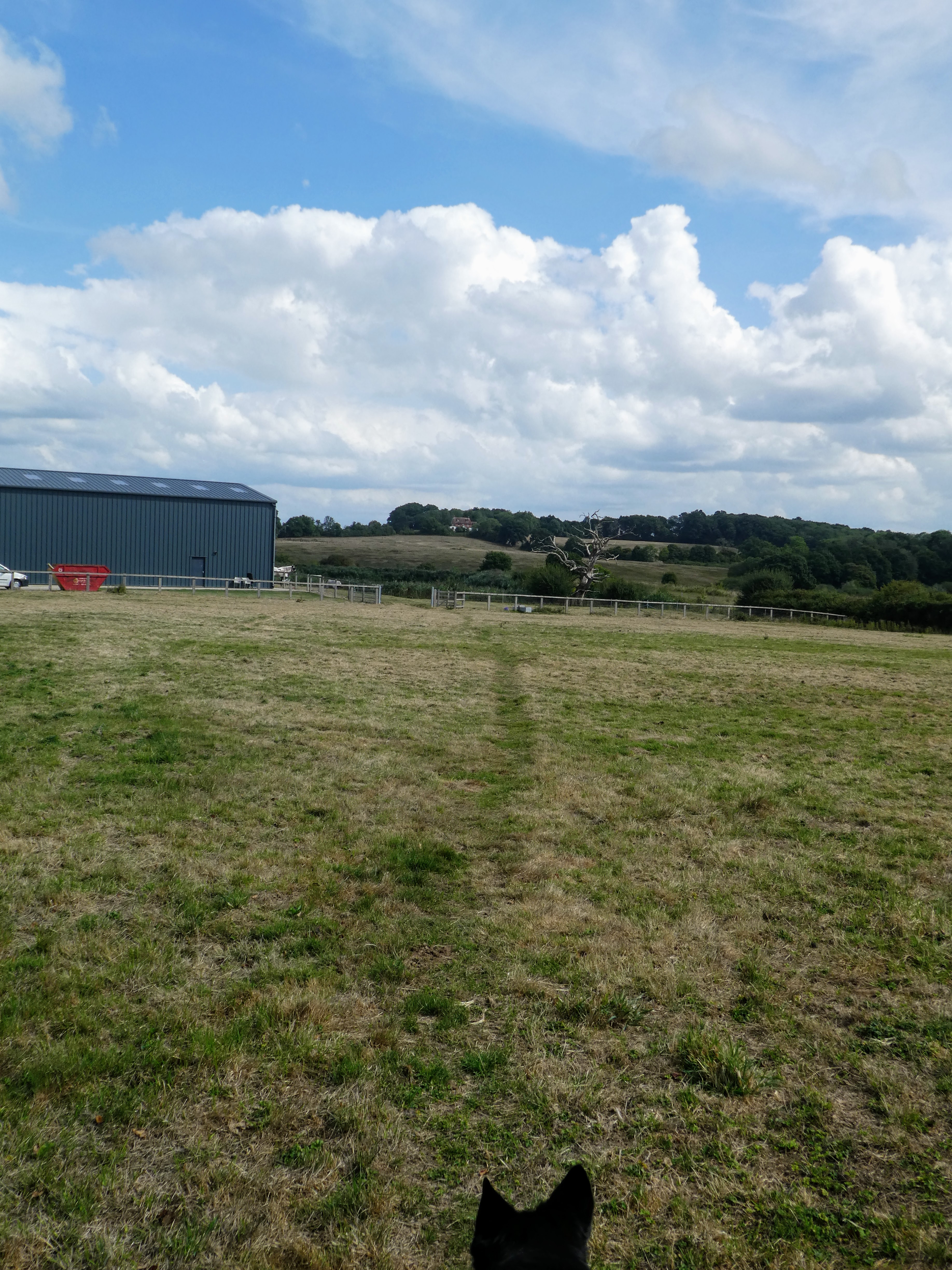 The path emerged beside Crimbourne house, where it continued up the driveway to Hawkhurst Court. (Although we got told off for walking on the grass outside the stud by some jobsworth).