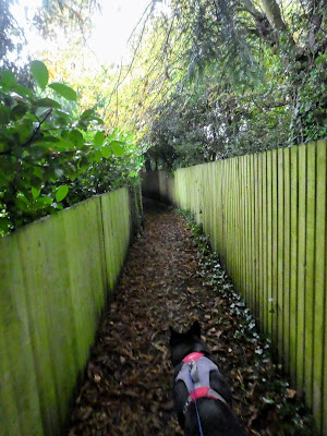 The SDW followed a tarmacked lane beside some houses, dropping slightly up to a point where the lane turned off right.