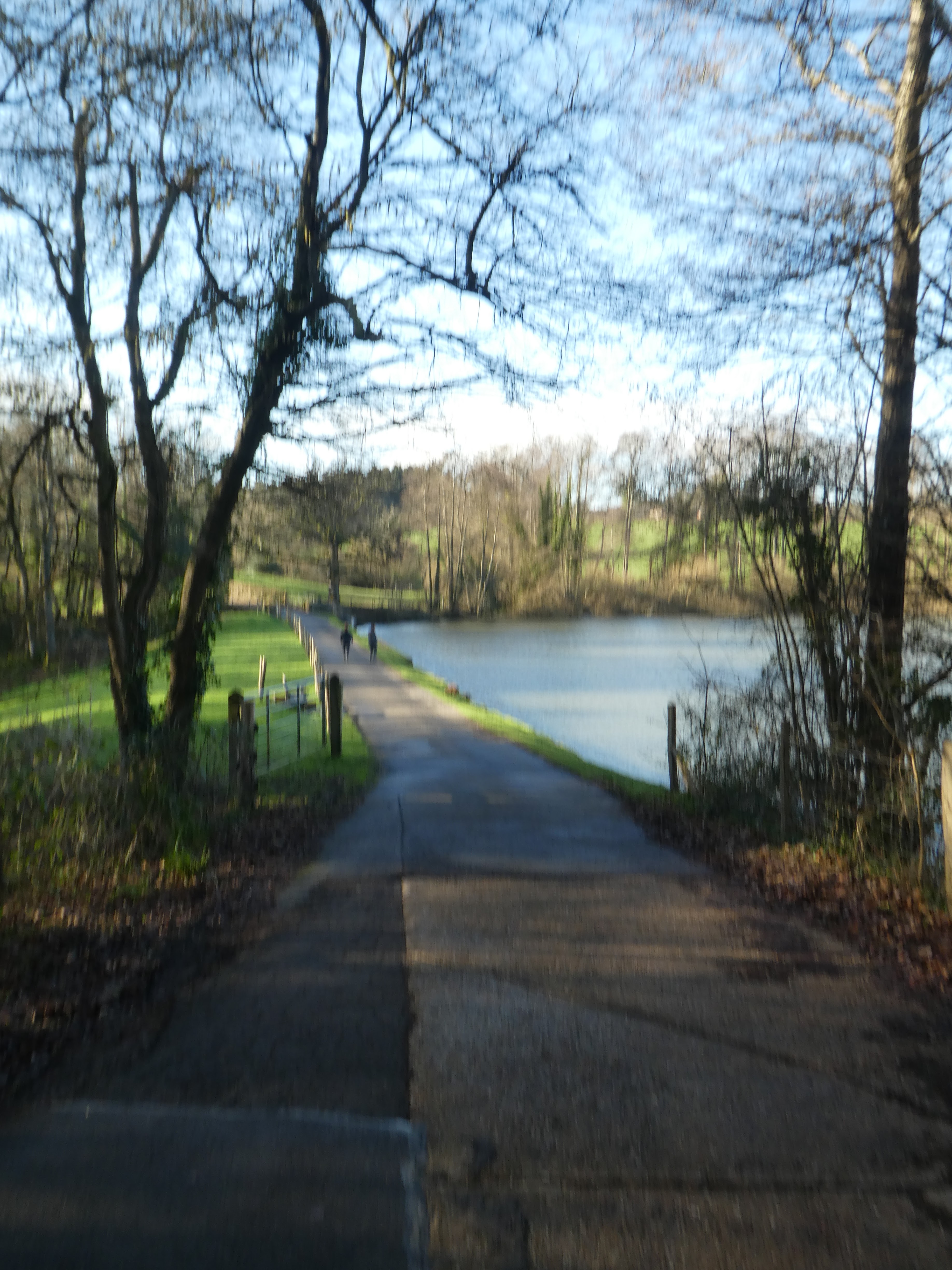 At the farm we turned off through a grass field that eventually came out on a concrete track (presumably a farm driveway). This led down to Balcombe lake