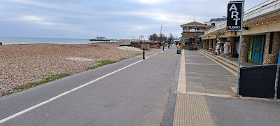 Looking both ways along the promenade, before settling on heading East. The prom has been divided into a cycle path and a footpath, but no one seemed to pay any attention to it.We continued along the prom towards and then past East Worthing.