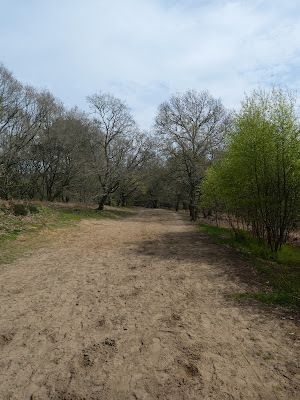 Beyond the church we continued on the sandy path down to the car park at Guildford Lane. Continuing now on the Pilgrims' Way on a slight ridge below the car park at Newlands corner.