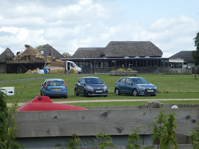 In the village we turned down a lane that came out in a sunflower and pumpkin field. Across this, to cross the driveway for Bignor Villa - a roman site.