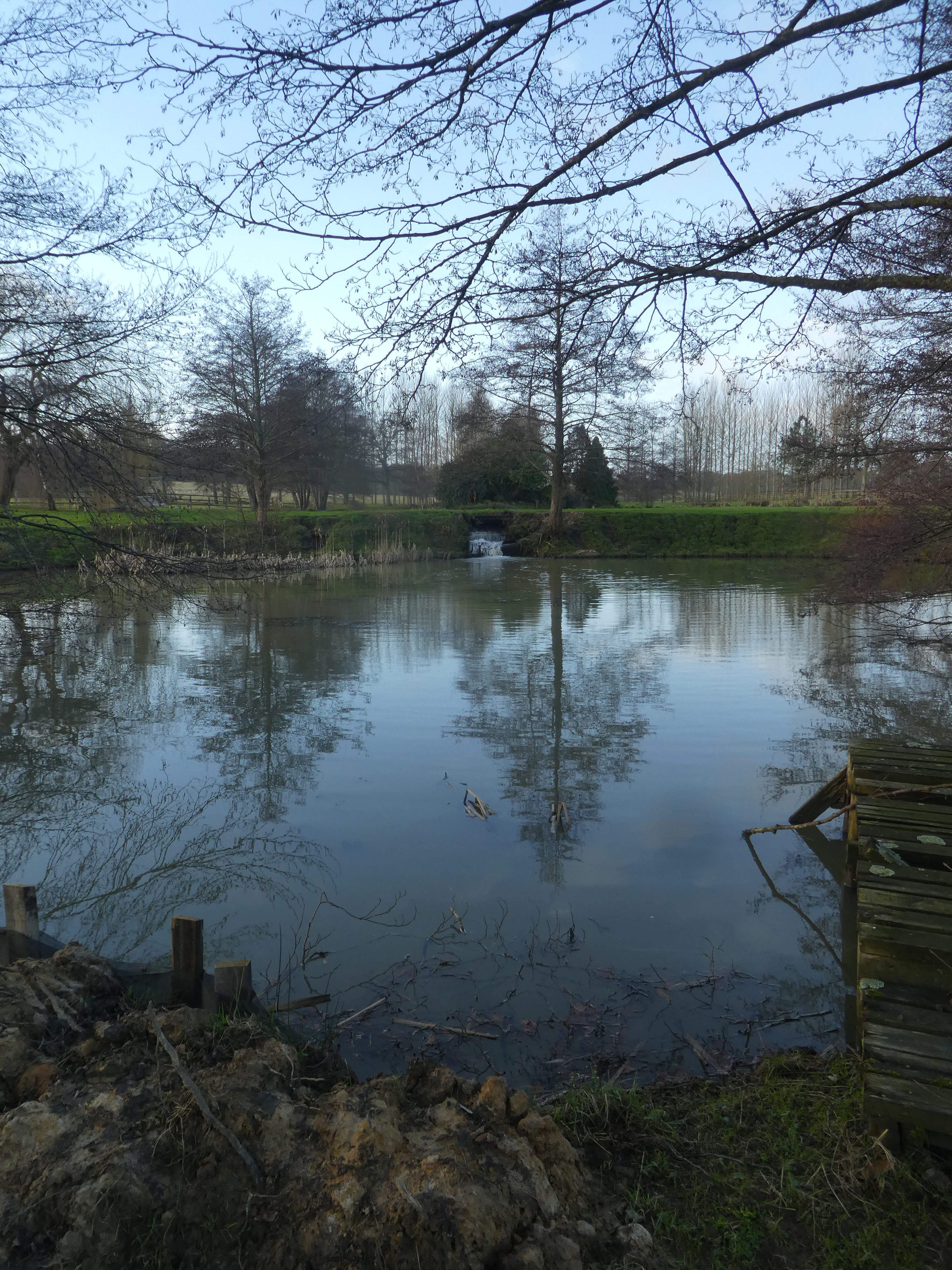 Across waterlogged fields and yet another lake (this time below Old Park house).