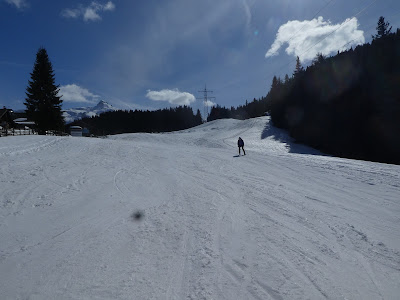 After a couple of bowls we traversed across to get back to the normal descent, then followed our way up back down to the Sattlebergalm. This was just like being on a piste. I avoided the steep mogul field as it had not had much sun and was very hard and packed, however the side loop was not much better.