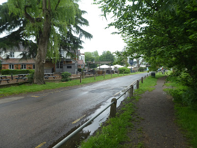 Still on the road as it touched the river at the Red Lion pub. then down the B376 to cut down to Walton Bridge