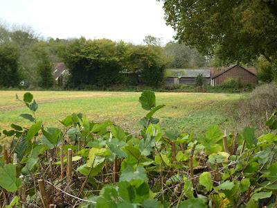 In the village I took a path down the side of the pub and into a fallow field, following the edge around to Stapley's farm. Along a back lane to a field gate on a bend.