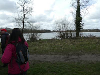 We met in the Nest café - as I was early I was tempted by the Pain Raisin - then off around the back of the houses behind.The path came out at the side of a large lake, which we followed the side down to Send Marsh and on following field edges in a woodland path.