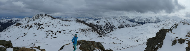 The tricky corner was easier on the way back - mainly due to skins and climbing