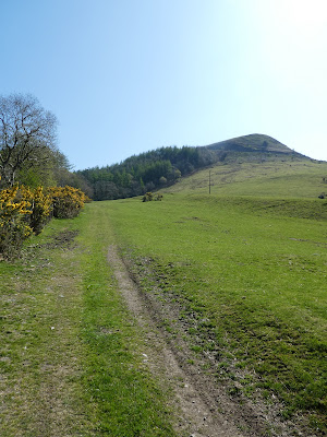 The path came out onto a farm track that contoured along the side of the ridge climbing in a much gentler manner. I could have continued straight up the grass if I had so desired, but prudence called for me to follow the track as it zigzagged across it.